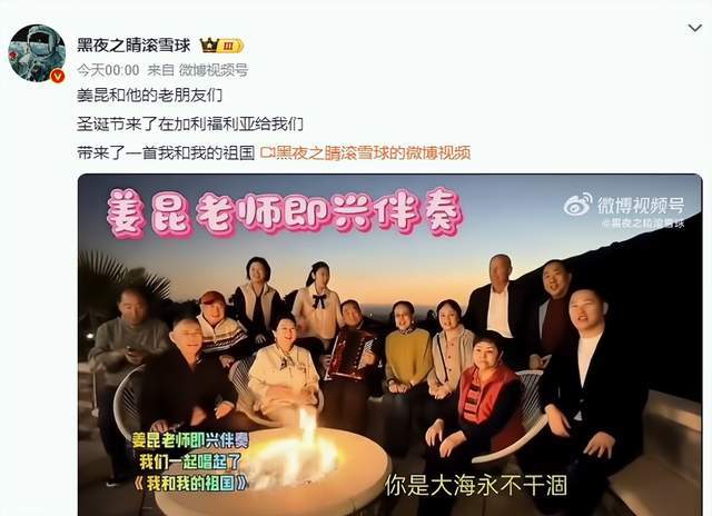 23号,有网友分享姜昆携多位艺人在美国唱歌的画面,众人齐唱《我和我的祖国》,并祝福祖国圣诞节快乐,歌曲没有问题,但远在大洋彼岸,这样的声音结合场景,总给人一种不舒服的感觉。
